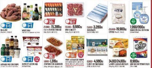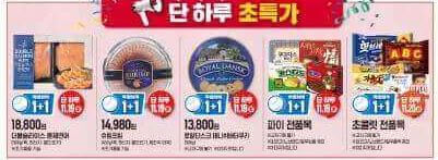 이마트에브리데이 | 11월 17일부터 20일까지 | 약 700여 개의 주요 생필품 최대 50% 할인 - 제철 고산지 사과(4~7입)는 7,980원 - 대패 삼겹살(1kg/팩)은 9,900원 - 무항생제 삼겹살/목심(500g)은 12,500원 - 설향/장희 딸기(500g)는 1만~15,980원 |