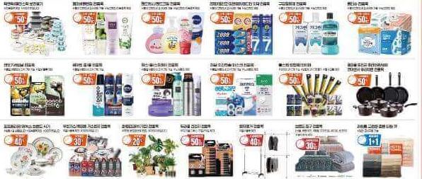 ▶ 필수 생활용품 전품목은 2개 구매 시 50% 할인가에 제공: 세탁세제 등